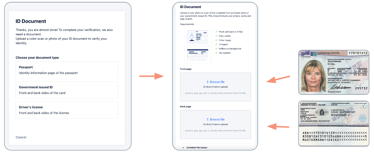 In the image below, you can see an example of how your document photo should appear. To ensure successful verification, please upload a clear photo of the original document, as photocopies may not be accepted.